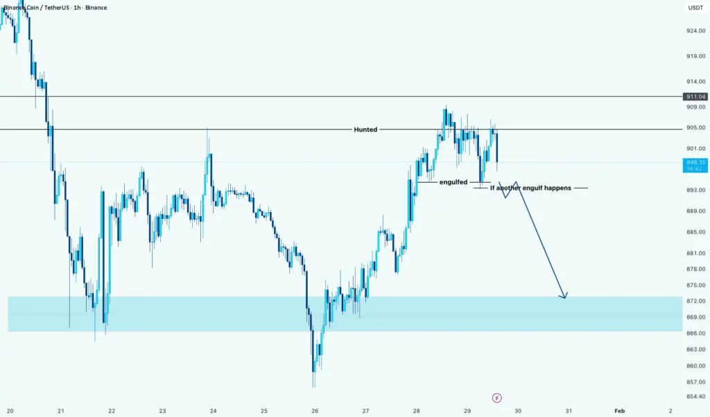 BNB/USDT – جذب نقدینگی و برگشت احتمالی