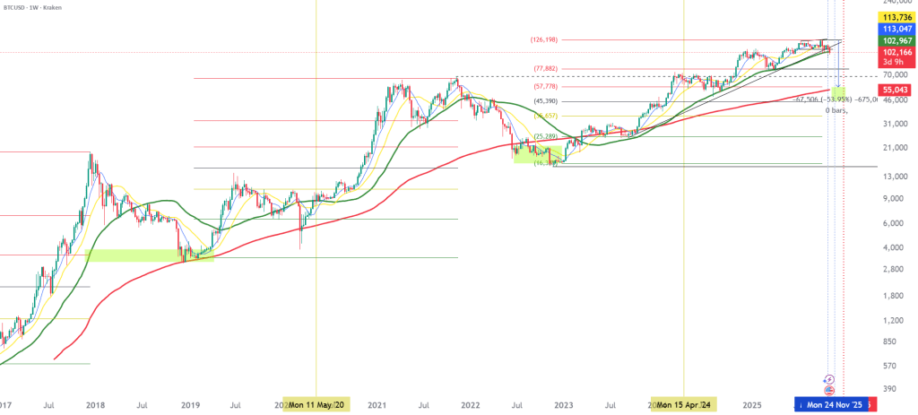 باید زیر ۲۰۰ SMA روزانه و ۵۰ SMA هفتگی باشه که هر دو روی ۱۰۲ هزار دلارن.