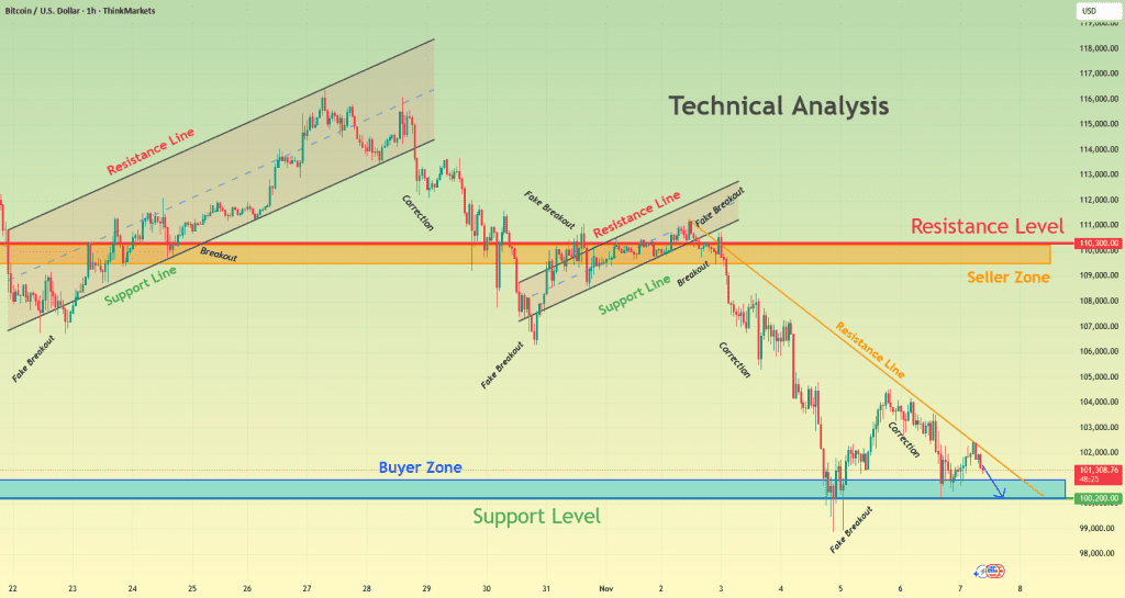 BTCUSD منطقه خریدار رو تست می‌کنه — هدف، شکست زیر ۱۰۰ هزار دلار