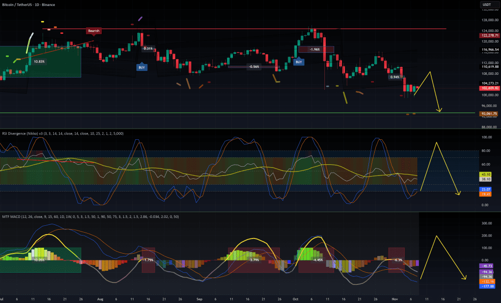 بیت کوین هم تو RSI و هم تو MACD تو تایم‌فریم‌های مختلف بیش از حد فروخته شده.
