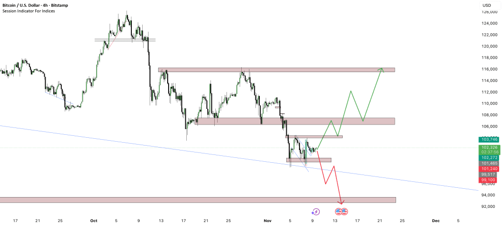 94K–95K که با خط روند نزولی همسوئه، هدف قرار می‌گیره.