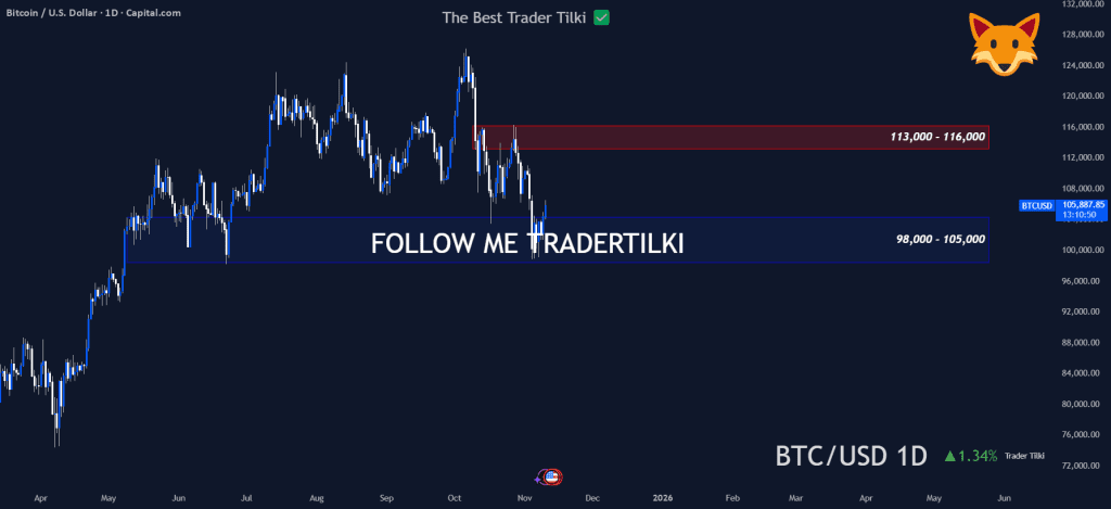 تا زمانی که بیت کوین زیر ۹۸,۰۰۰ نیفته، هدف من همون ۱۱۳,۰۰۰ میمونه.