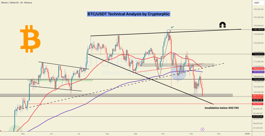 بیت کوین باید اینجا برگرده؛ در غیر این صورت، اگه زیر ۹۵,۷۸۵ بسته بشه، این سناریو از بین میره.