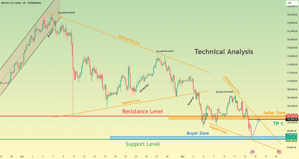 برگشت BTCUSD از منطقه خریدار — اصلاح به سمت ۱۰۱ هزار دلار