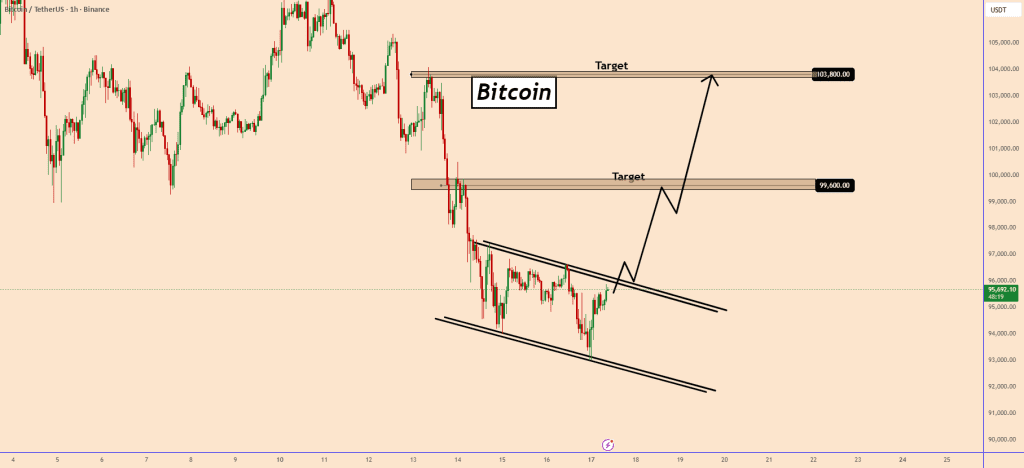 بیت کوین داره نشانههای اولیه یک برگشت صعودی کوتاهمدت رو نشون میده، چون قیمت همچنان به کانال نزولی احترام میذاره. آخرین برگشت از مرز پایینی کانال، نشوندهنده علاقهی رو به رشد خریدارهاست و شکستن خط روند بالایی میتونه یه ریکاوری قویتر رو شروع کنه.