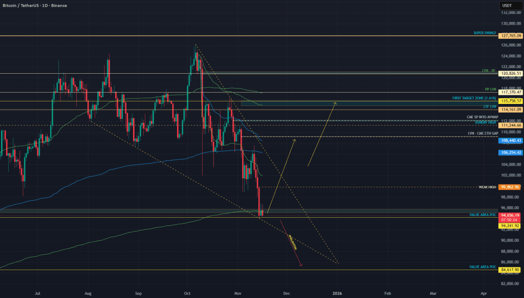 اگه بیت کوین حمایت رو از دست بده و زمان قابل توجهی رو زیر ۹۳,۰۰۰ بگذرونه، حمایت اصلی بعدی ۸۴,۶۱۷ هست. این نقطه کنترل بعدی از حراج AVWAP و یک سطح فوق‌العاده مهم برای تماشا هست.