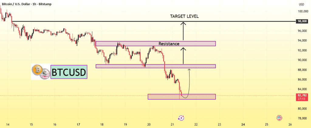 اگه بیت کوین این حمایت رو بشکنه به سمت پایین، ریزش بیشتری ممکنه رخ بده.