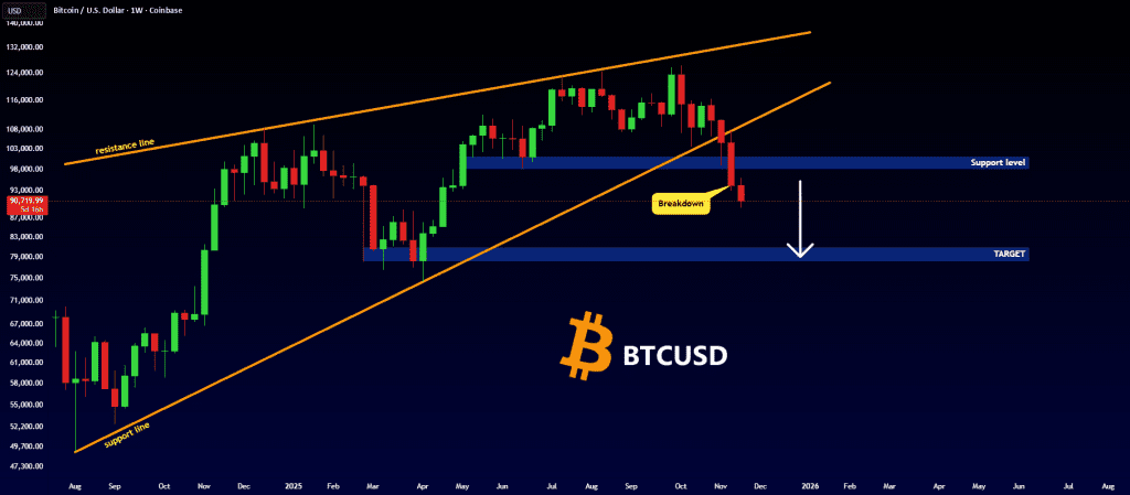 بیت کوین هم خط حمایت کنج صعودی رو شکونده و هم محدوده حمایتی اصلی رو
