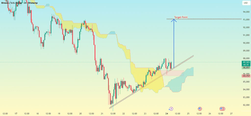 📌 BTC/USD (تایم‌فریم ۱ ساعته) – تحلیل تارگت