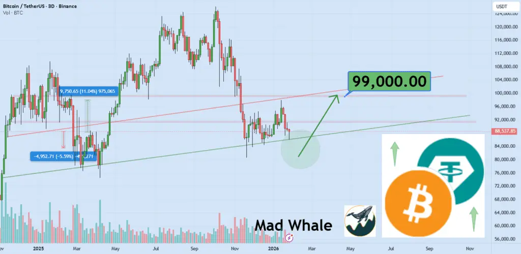 BTCUSDT حداقل ۵ تا ۱۱ درصد به سمت ۹۰ هزار و ۹۵ هزار و ۹۹ هزار