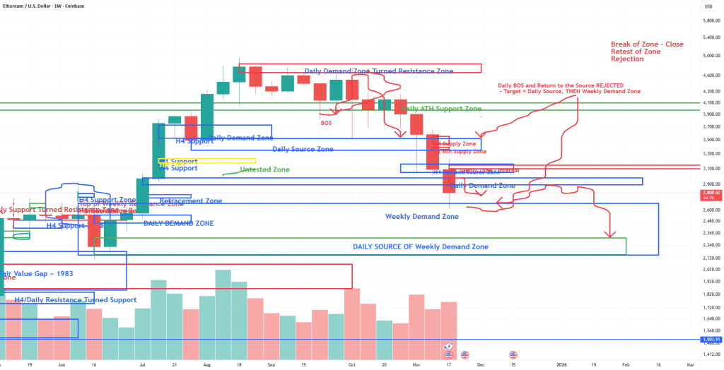 چیزی که باید ببینیم یه شکست ساختار (Break of Structure) واضح از این ناحیه تقاضای هفتگی بزرگ