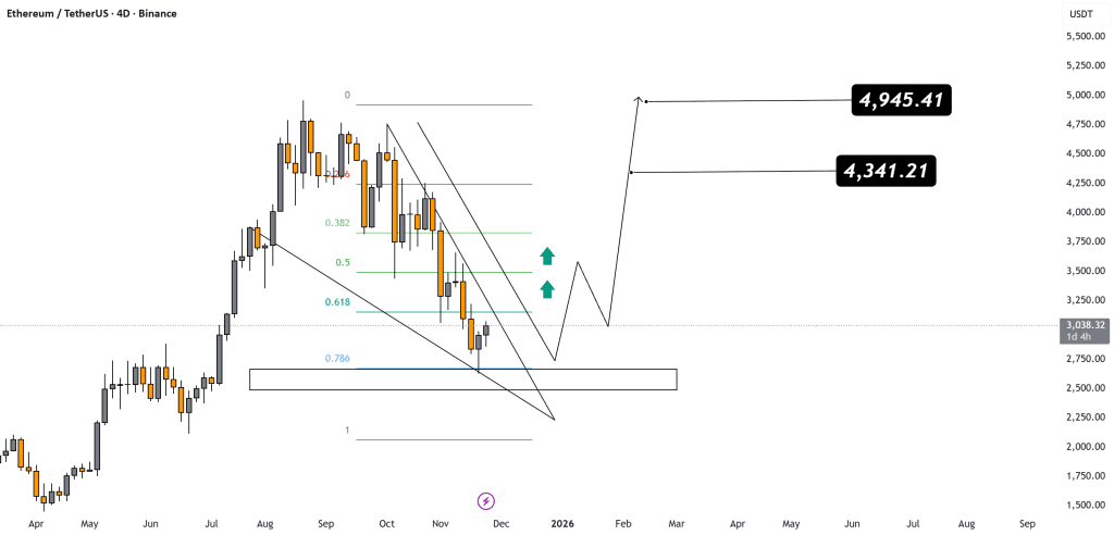 اتریوم داره وارد یه همگرایی حمایت قوی میشه — فیبوناچی ۰.۷۸۶ + ناحیه تقاضای اصلی — در حالی که داره یک کنج نزولی رو توی چارت ۴ روزه کامل می‌کنه 👨‍💻 این یه ستاپ برگشت ماکروی کلاسیکه.