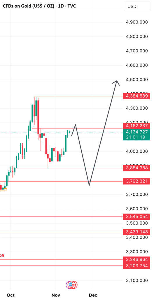 نمودار روی تایمفریم روزانه است. ممکنه ۴۱۸۰-۴۲۰۰ رو ببینیم، اون ناحیه شورت منه!