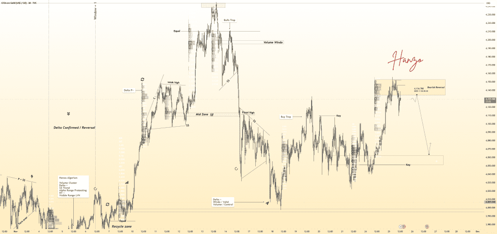 طلا ۳۰-دقیقه — برگشت نزولی حجمی فعال شد