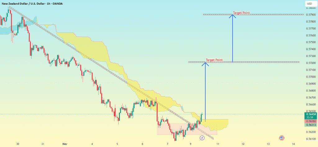 NZD/USD (تایمفریم ۱ ساعته) — اینم تحلیل هدف: