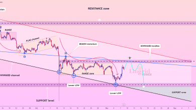 قیمت کاملاً مطابق با ایده قبلی من پیش رفت . از مرز بالایی ساختار نزولیاش برگشت خورد و همچنان در یک کانال نزولی مشخص معامله میشود. ساختار قیمت نشاندهنده کفهای--0۰--0۰ -