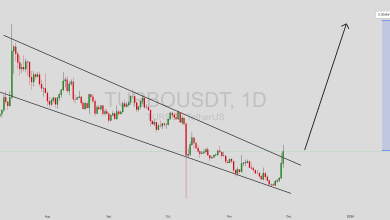TURBOUSDT در حال تشکیل الگوی واضح کنج نزولی هست، که یک سیگنال کلاسیک برگشت صعودی محسوب میشه و اغلب نشوندهنده یک شکست صعودی قریبالوقوعه. قیمت توی یه محدوده باریکتر در-- -- ۰-- -- ۰ -