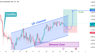 XAUUSD: حرکت کانال به سمت بالا، هدف بعدی رو ۴۲۲۰ دلار نشون میده