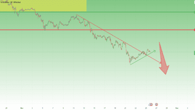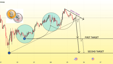 قیمت داره داخل یه روند نزولی واضح حرکت میکنه و دوباره خط روند رو پس زده. اگه فشار نزولی ادامه پیدا کنه، میتونیم انتظار یه افت تا اولین محدوده هدف-- -- ۰-- -- ۰ -
