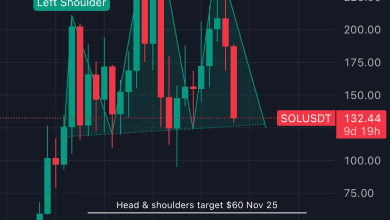 سولانا داره توی تایمفریمهای بالاتر یه الگوی سر و شانه واضح نشون میده. اگه خط گردن حوالی ۱۲۵ دلار بشکنه، هدف نهایی ۶۰ دلار خواهد بود. این یعنی یه کاهش-- -- ۰-- -- ۰ -