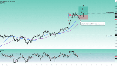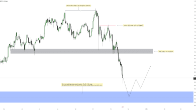 به نظرم، ممکنه قراره شاهد یه حرکت بزرگ رو به پایین و بالا باشیم. این اتفاق سه بار با یه ریتم مشابه و همون خط روند اوجها افتاده، پس… همچنین-- -- ۰-- -- ۰ -