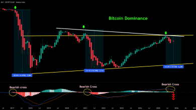 دامیننس بیت کوین (ماهانه)، یه الگوی ساختاری چند ساله با MACD