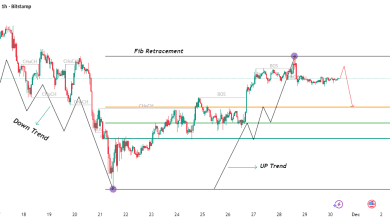 BTCUSD – تغییر روند، تایید BOS و مناطق واکنش فیب