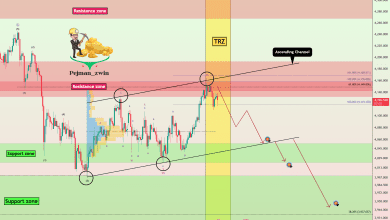 ۵ روز پیش طلا ( XAUUSD) طبق انتظار من، تا منطقه مقاومت (۴۱۹۲ تا ۴۱۳۳ دلار) بالا رفت وایده قبلی و به هدفش رسید. طلا در حال حاضر نزدیک منطقه-- -- ۰-- -- ۰ -