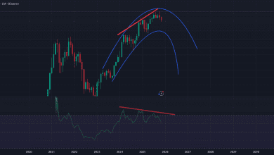 بیت کوین داره همون روند سقفسازی سالهای ۲۰۲۱-۲۲ رو تکرار میکنه. رالی گاوی تموم شده و سقف توی سپتامبر بود. حالا یه روند فرسایشی کند یا سقوط آزاد رو میبینیم.--0۰--0۰
