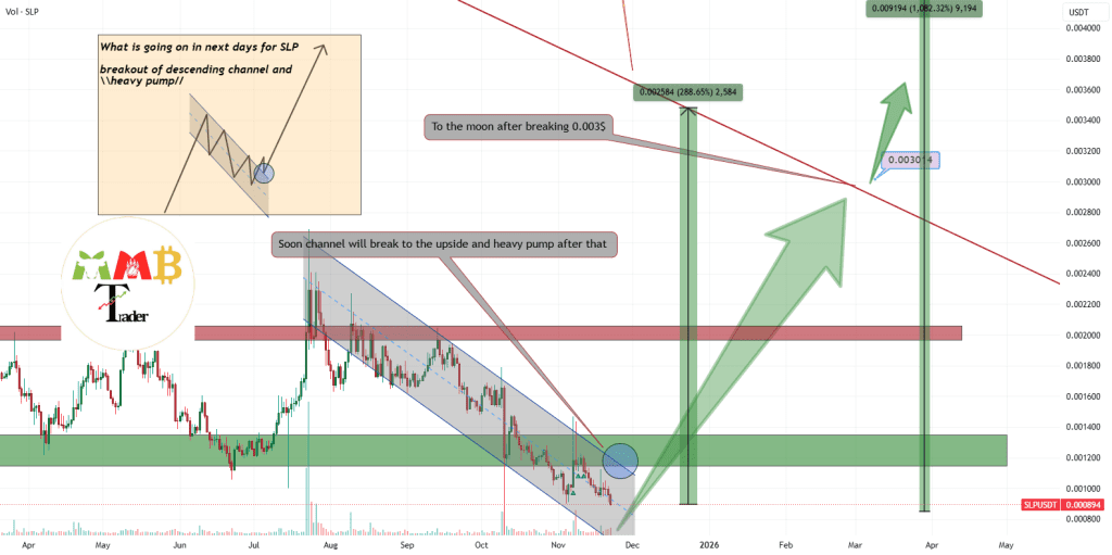 SLPUSDT یه آرایش تکنیکال جذاب با پتانسیل قابل توجهی رو نشون میده. بعد از یه دوره نزولی طولانی که چند سال طول کشید، این توکن الان داره به یه نقطه عطف تکنیکال مهم نزدیک میشه. چارت روزانه نشون میده که این دارایی داره نزدیک مرز بالایی کانال معاملاتی بلندمدتش تثبیت میشه.