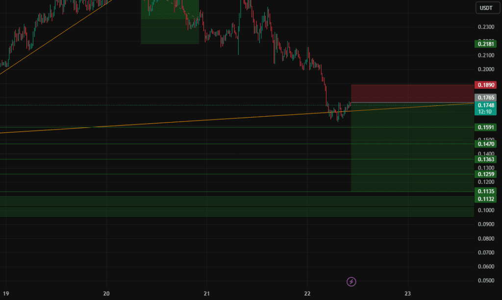 شکافهای نقدینگی زیر قیمت که پتانسیل نزولی رو به سمت ۰.۱۵۹ – ۰.۱۳۶ نشون میدن