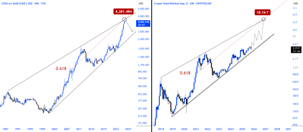 طلا در برابر کل ارزش بازار.