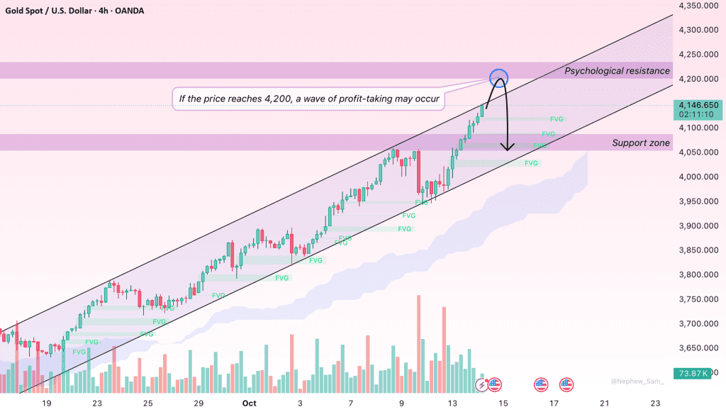 با این حال، ممکنه در اطراف اون سطح شاهد مقداری سودگیری باشیم، که احتمالا باعث یک برگشت به سمت ۴۱۰۰ دلار بشه قبل از اینکه روند صعودی بعدی شروع بشه. برای معاملهگرهای صبور، چنین برگشتهایی میتونه فرصتهای ایدهآل «خرید در افت قیمت» رو فراهم کنه.