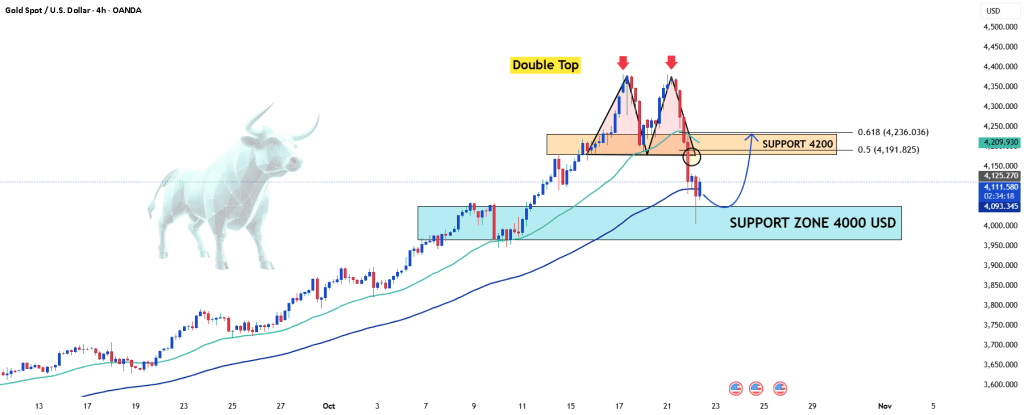 از دیدگاه تکنیکال: طلا قبلاً بعد از تشکیل الگوی سقف دوقلو (دابلتاپ) و شکستن چندین سطح حمایت کلیدی، افت کرده بود. حالا داره حوالی ۴۱۰۰ دلار واکنش نشون میده و از محدوده حمایت ۴۰۰۰ دلاری یه تکانه موقتی میگیره.