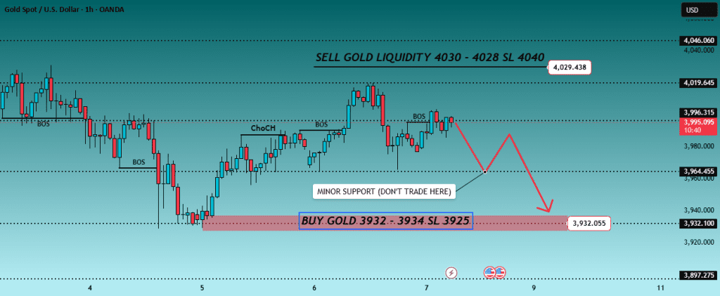 • از معامله مستقیم در حمایت جزئی حدود ۳۹۶۴ خودداری کنید — این یک ناحیه ورود معتبر SMC نیست.