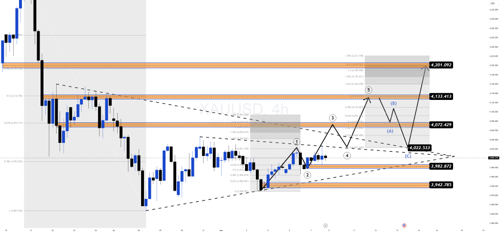 • 🎯 هدف موج ۳: ۴,۰۷۲$ – ۴,۱۳۳$ (اولین منطقه واکنش)