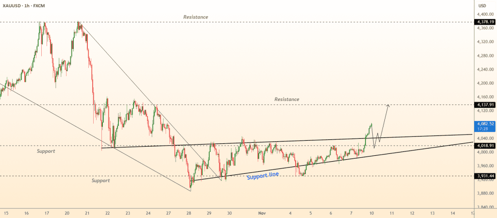 ● جفت ارز XAU/USD از یه دوره طولانی تثبیت قیمت خارج شده و الان بالای خط حمایت صعودی اصلی نزدیک ۴۰۲۰ دلار معامله می‌شه، که نشون‌دهنده شروع ساختار صعودیه.