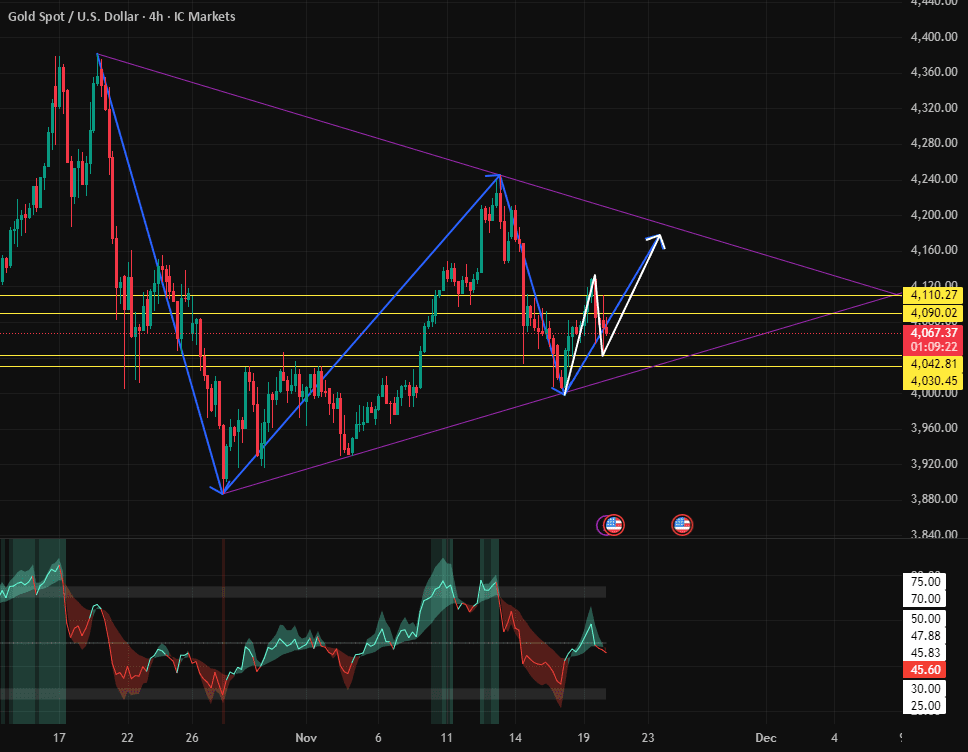 طلا بعد از اینکه سهشنبه به یه کف رسید، دوباره برگشت بالا و خریدارها یه ضدحمله رو از محدوده ۴۰۰۰ شروع کردن. روند صعودی چهارشنبه هم ادامه داشت، اما خیلی قوی نبود؛ در عوض، یه رشد پلکانی و نوسانی بود که نشون میده بازار همچنان تو یه فاز تثبیت تو محدوده وسیع قرار داره. برای اینکه یه روند صعودی جدید بسازه، به زمان احتیاج داره. در حال حاضر، خریدارها و فروشندهها هنوز تو یه کشمکش هستن و تریدرهای کوتاهمدت روزانه باید به تغییر ریتمهای صعودی و نزولی دقت کنن.