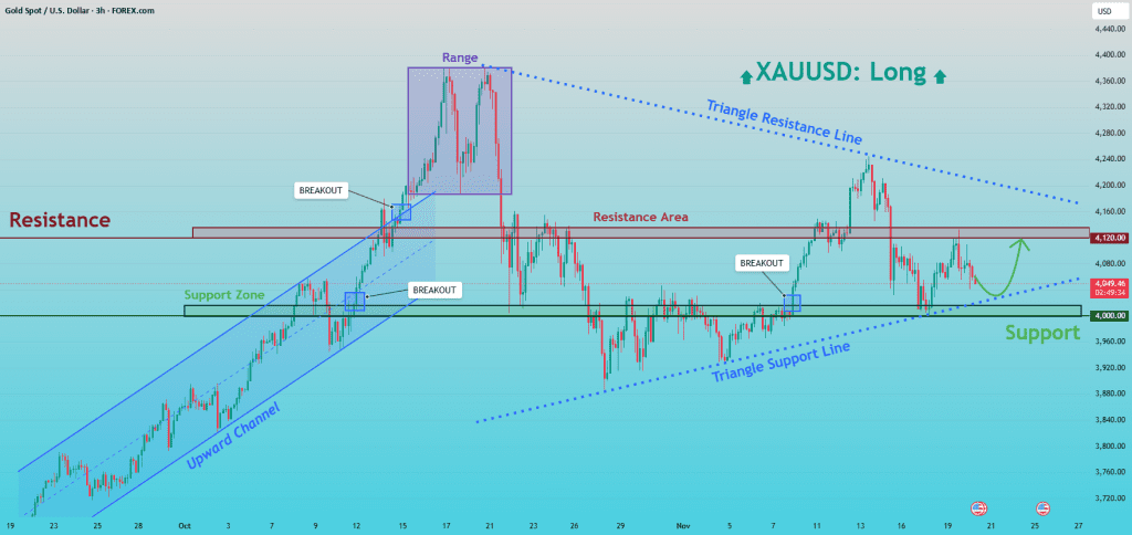 XAUUSD: قیمت روی حمایت مثلثی موندگار شده، هدفش ۴,۱۲۲ دلاره
