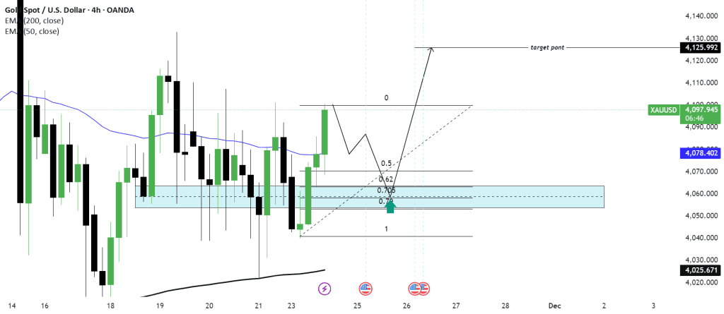 تحلیل تکنیکال ایده تحلیلی شما بر اساس چارت ارائه شده (XAUUSD – 4H):