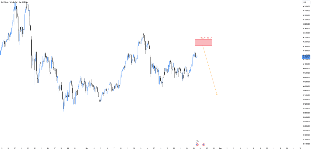 من حواسم به منطقه مقاومتی حدود ۴۱۸۳ تا ۴۲۱۱ هست. ممکنه قیمت لازم نباشه به بالاترین نقطه این منطقه برسه تا برگرده پایین — گاهی اوقات بازار کمی پایینتر برمیگرده وقتی نقدینگی از قبل استفاده شده باشه.