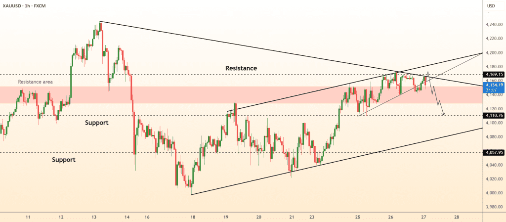 ● تمایل نزولی زیر ۴,۱۷۰. اهداف: ۴,۱۱۰ ← ۴,۰۵۸. مقاومت: ۴,۱۷۰.