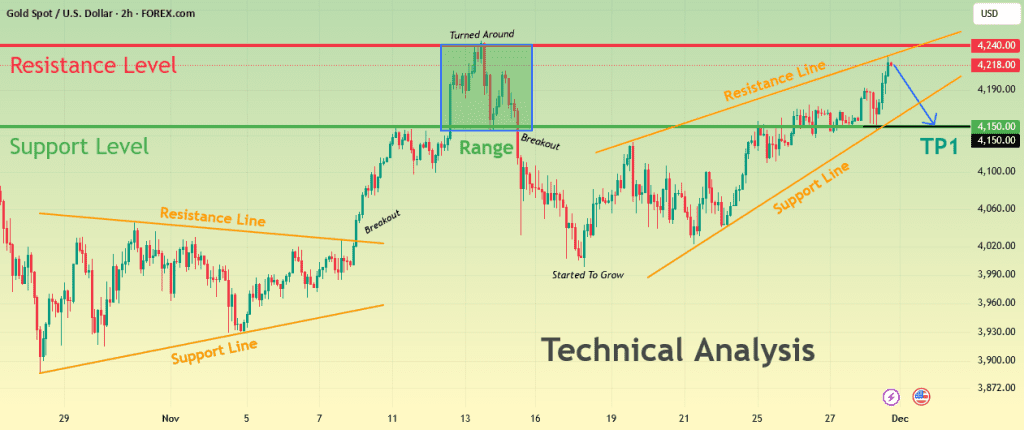 طلا در سقف کانال کُند شد — بازار قبل از حرکت رو به بالا، ۴۱۵۰ رو هدف قرار می‌ده