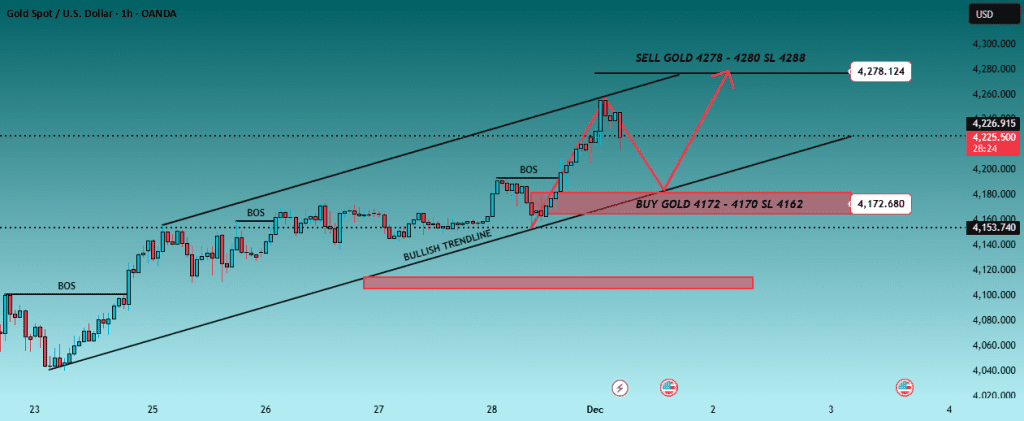 طلا H1 – آیا ۴۲۷۸-۴۲۸۰ باعث افت قیمت تا ۴۱۷۰ امروز میشه؟