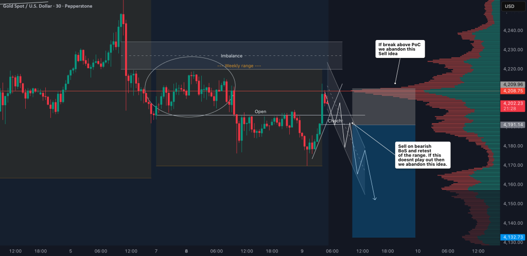 اگه طلا زیر این POC بمونه و یک ادامه واضح به سمت پایین داشته باشیم، دنبال یک فرصت فروش بالقوه می‌گردم. ✔️ ولی، اگه قیمت دوباره برگرده بالای POC و شروع کنه به نگه داشتن خودش بالای اون ناحیه، اون وقت ایده نزولی رو کلاً کنار می‌ذارم و منتظر یک فرصت جدید می‌مونم. ⚠️