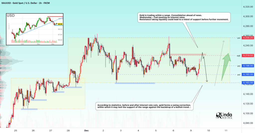 XAUUSD داره توی یک محدوده وسیع در انتظار جلسه نرخ بهره فدرال رزرو تثبیت میشه. اینکه نرخ بهرهها قراره کم بشه، به احتمال زیاد قبلاً توسط بازار در نظر گرفته شده. احتمال یک لانگ اسکوییز وجود داره…