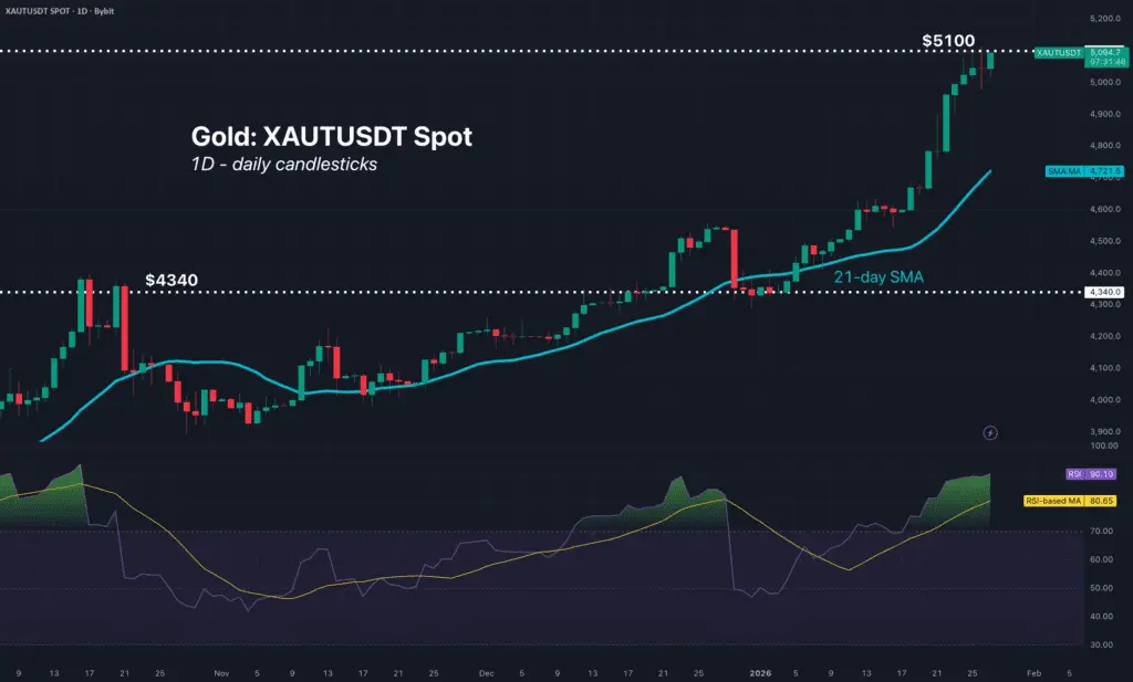 راستش رو بخواید، طلای ۵۰۰۰ دلاری زودتر از چیزی که انتظار می‌رفت از راه رسید، بعد از مقاله‌مون با عنوان “کی ممکنه طلای ۵۰۰۰ دلاری رو ببینیم؟” – که تو بلاگ Bybit Learn شب کریسمس (۲۴ دسامبر ۲۰۲۵) منتشر شد.