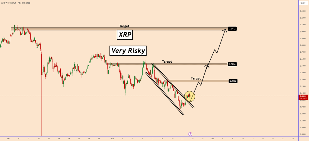 مشکل فعلی اینه که بیت کوین (BTC) هنوز خیلی ضعیفه و هیچ نشونه واضحی از برگشت نداره. اگه بیت کوین صعودی بشه و XRP به این الگو احترام بذاره، اون وقت یه موج صعودی میتونه از همین ناحیه شروع شه. اهداف اصلی: ۲.۲۷ ۲.۵ ۳.۰