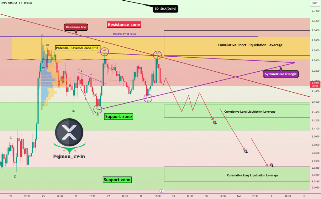 ریسک ریزش XRP: مثلث + مقاومت = کاهش