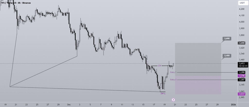 آمادهسازی خرید/لانگ YFI (در تایم 4 ساعته)